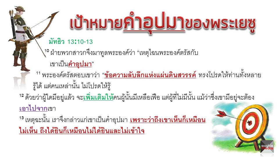 พระเยซูเลือกสอนเรื่องแผ่นดินของพระองค์เป็นคำอุปมา ใครที่อยากรู้ลึกรู้จริง ก็ต้องมาเรียนจากพระองค์ อ่านพระวจนะของพระเจ้า จนสามารถถอดรหัสปริศนานี้ได้